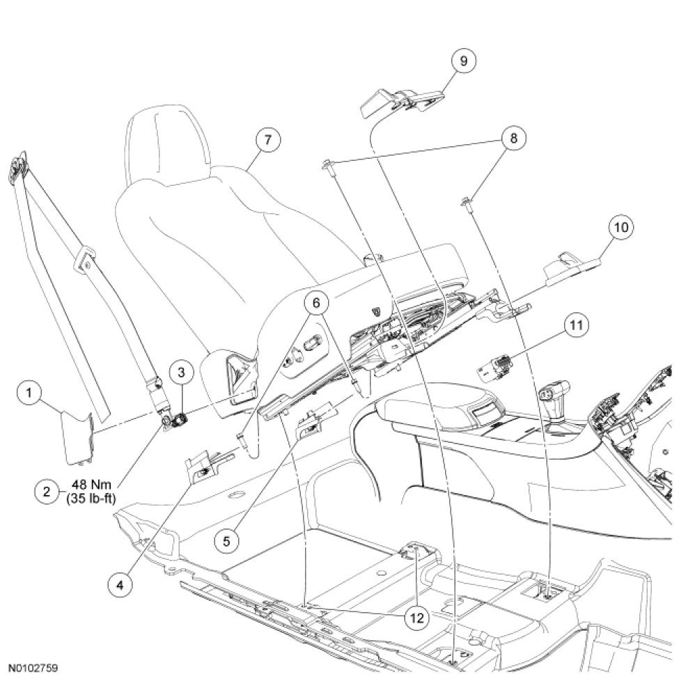 NOTE: Follow the installation procedure for correct seat fastener tightening sequence. The front mounting bolts must be installed and tightened to the correct specification before the rear mounting bolts.