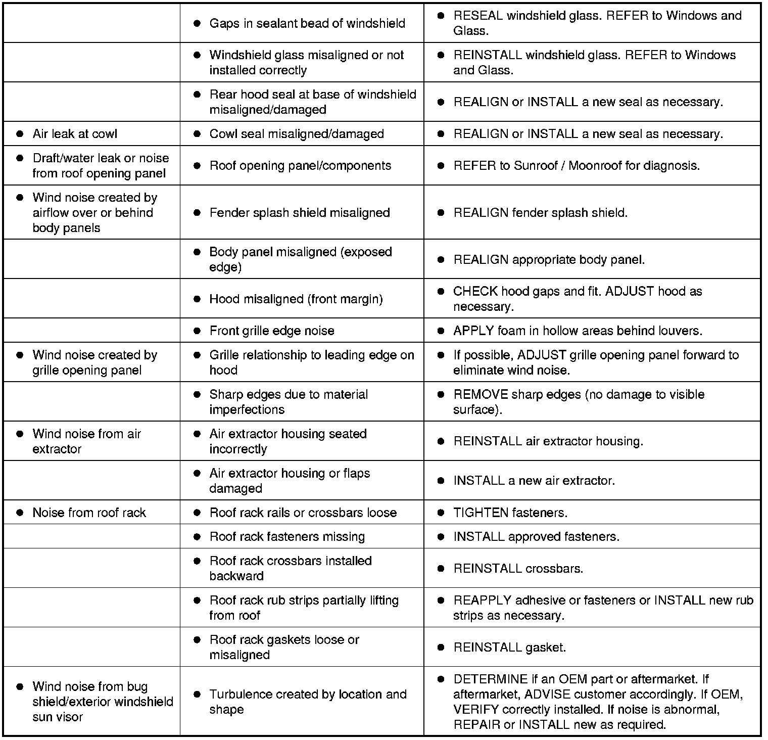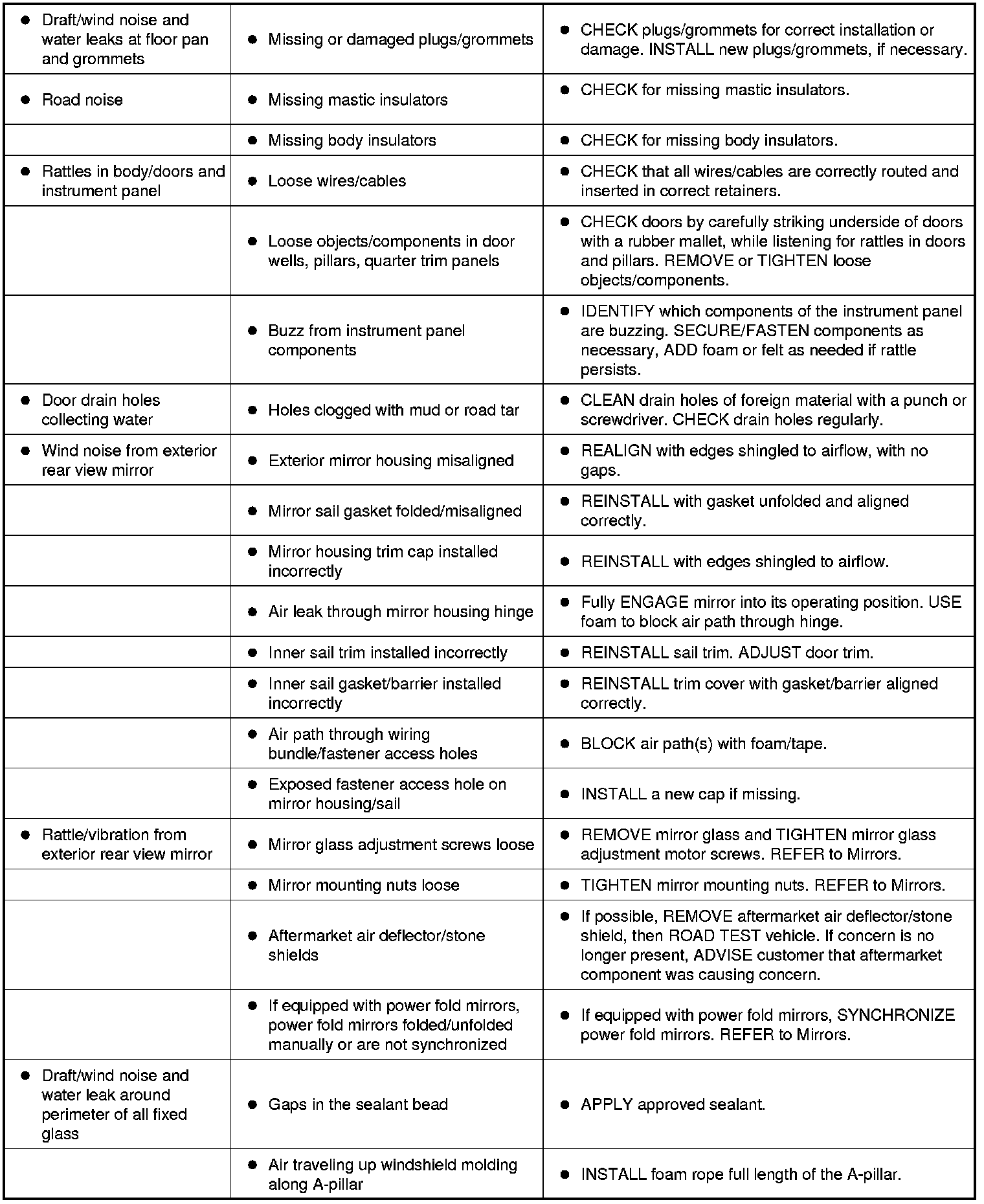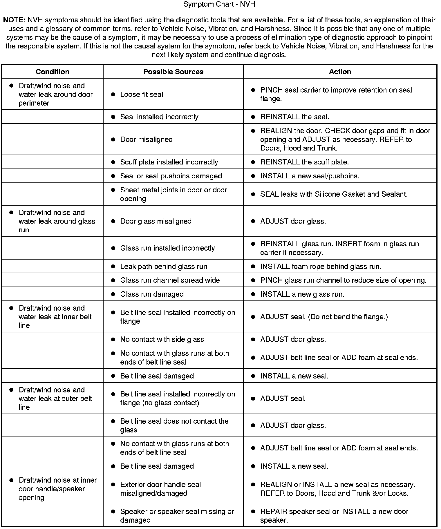 Symptom Chart - NVH