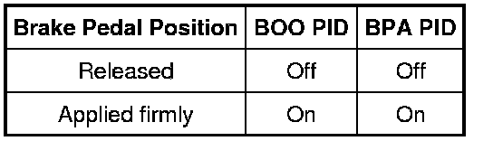 - Monitor the PCM PIDs BOO and BPA while applying and releasing the brake pedal as follows: