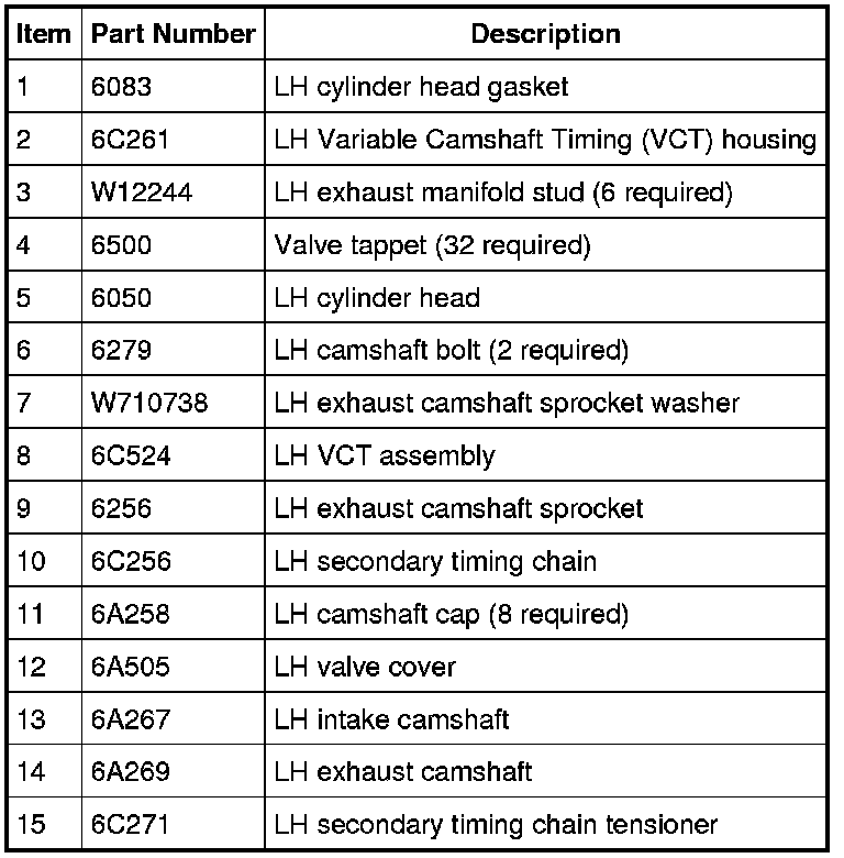 42. Install a new gasket, the LH cylinder head and 8 new bolts. Tighten in the sequence shown in 5 stages: