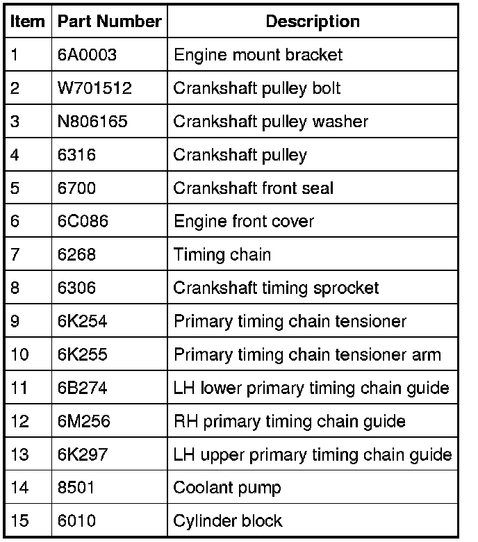 NOTE: On early build engines, the timing chain rides on the inner side of the RH timing chain guide. Late built engines are equipped with a different design RH timing chain guide that requires the timing chain to ride on the outer side of the RH timing chain guide. For service, all replacement RH timing chain guides will be the late build design.