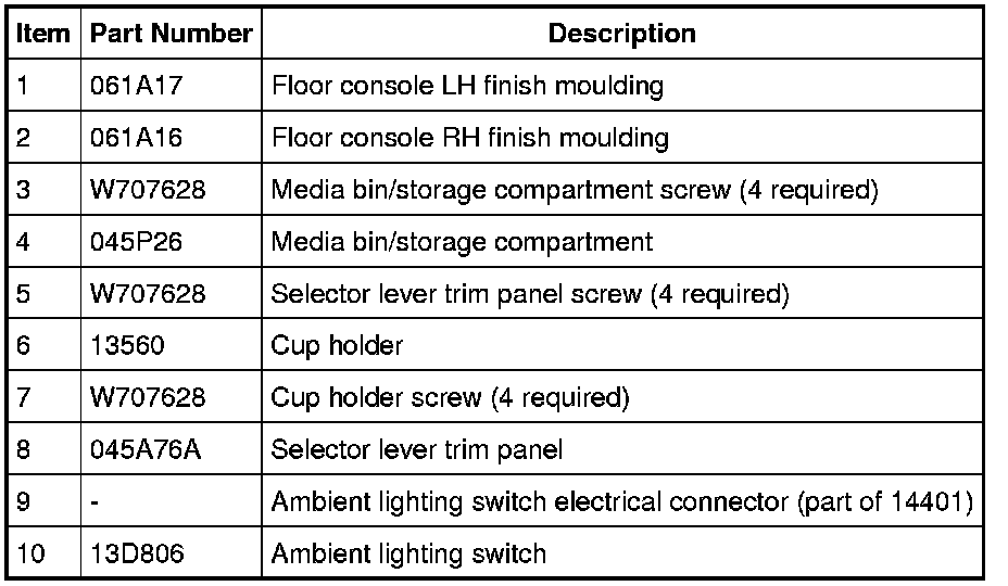1. Remove the floor console LH finish moulding.