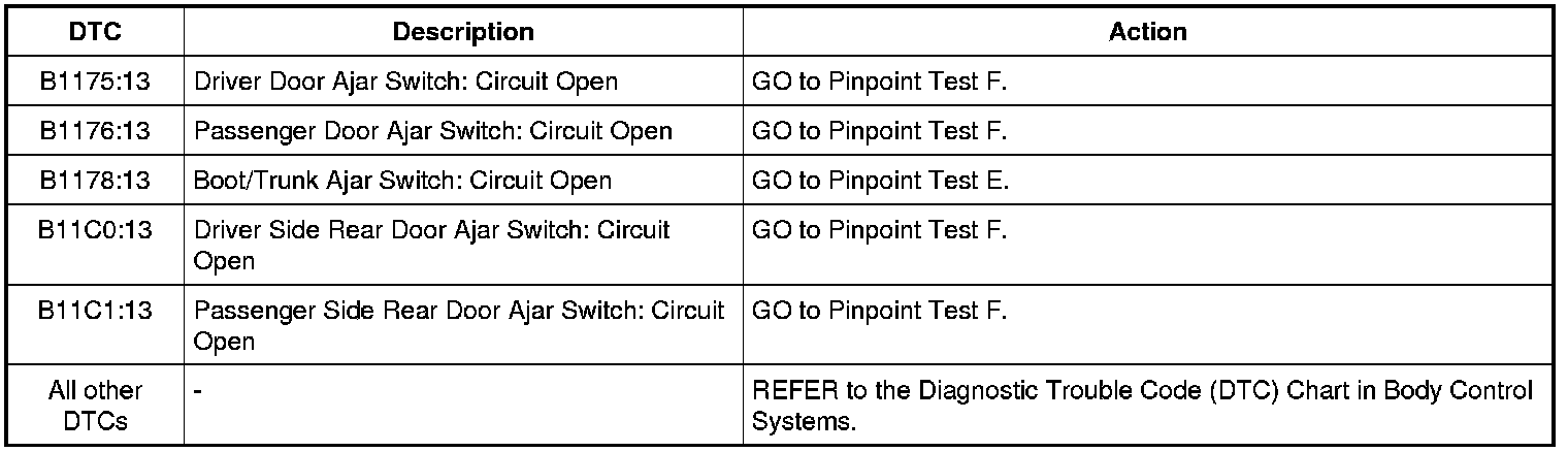 NOTE: This module utilizes a 5-character DTC followed by a 2-character failure-type code. The failure-type code provides information about specific fault conditions such as opens, or shorts to ground. Continuous memory DTCs have an additional 2-character DTC status code suffix to assist in determining DTC history.