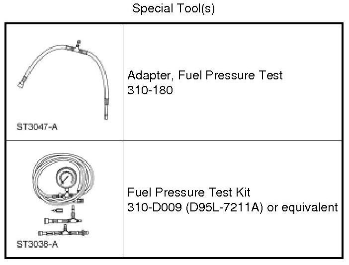 Test the fuel system pressure to make sure it is within the specified range. For additional information, refer to Specifications.