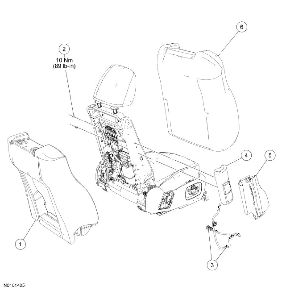 NOTE: If a side air bag deployment took place, a new seat backrest foam pad, backrest cover, deployment chute and side air bag module and nuts must be installed. The seat backrest frame should be replaced if necessary.