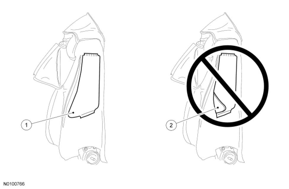 2. WARNING: Inspect the seat side air bag module cavity in the seat backrest foam pad for any foreign material. If any foreign material is found, remove it. Failure to follow these instructions may result in the seat side air bag module deploying incorrectly and increases the risk of serious personal injury or death in a crash.