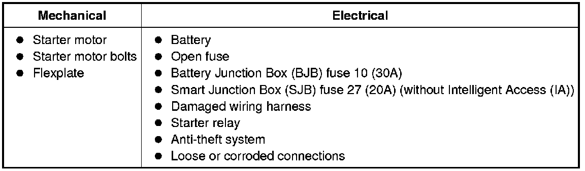 NOTE: The anti-theft system must be functioning correctly before a logical starting system diagnosis can be carried out. Address anti-theft system concerns before continuing. Refer to Antitheft and Alarm Systems.