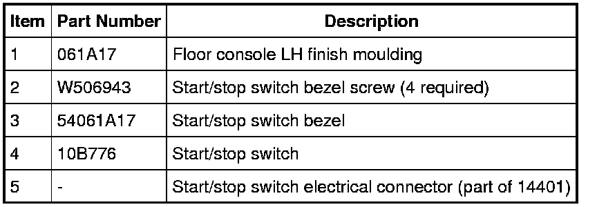 2. Remove the 4 start/stop switch bezel screws and remove the start/stop switch.