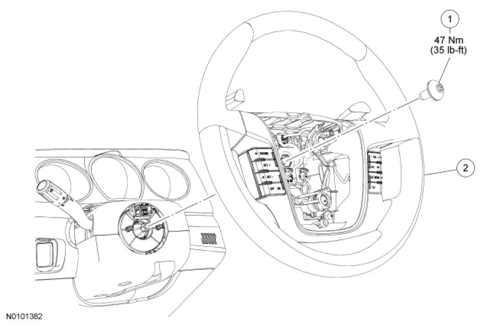 1. Remove the driver air bag module. For additional information, refer to Restraint Systems.