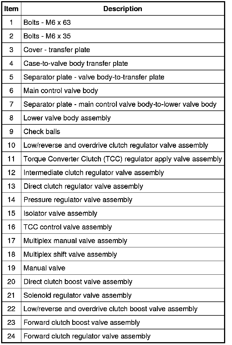 Remove the 5 valve body bolts and the transfer plate assembly.
