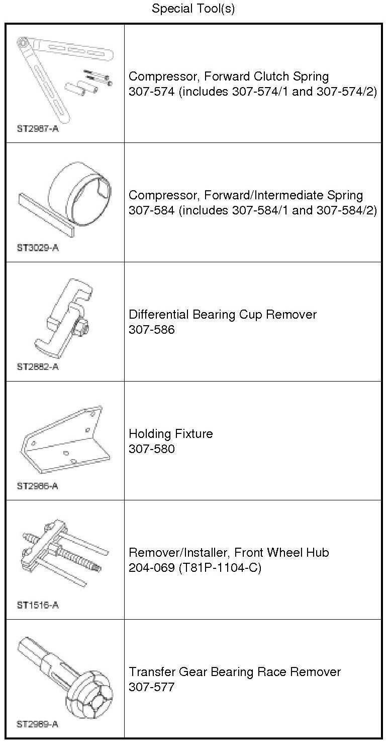 40. NOTE: The Forward/Intermediate Spring Compressor 307-584 (307-584/1 and 307-584/2) and the Forward Clutch Spring Compressor 307-574 (307-574/1 and 307-574/2) are not shown for clarity.