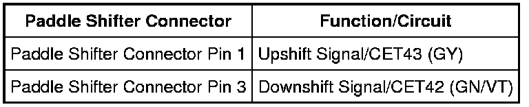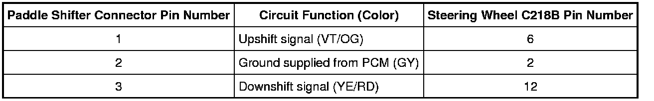 NOTE: Both RH and LH paddle shifter connectors are the same and share the same circuits.
