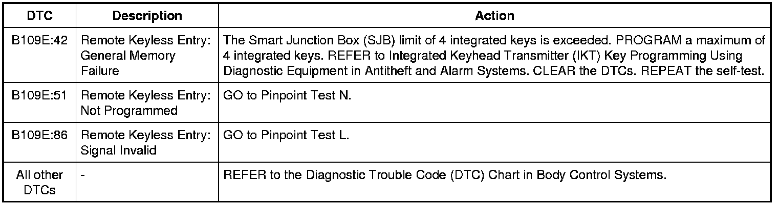 Smart Junction Box (SJB) DTC Chart