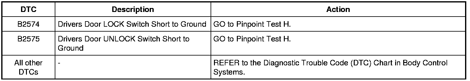 Driver Door Module (DDM) DTC Chart