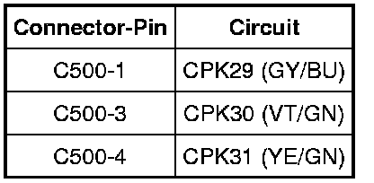 - For early build vehicles, measure the voltage between the keyless entry keypad C500-6, circuit SBP13 (GY/RD), harness side and ground.