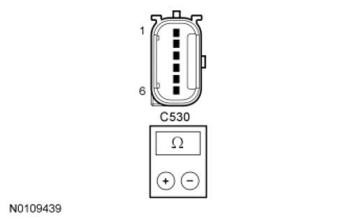 - For late build vehicles, measure the resistance between the keyless entry keypad C530-6, circuit GD133 (BK), harness side and ground.