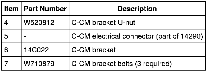 2. NOTE: If one plastic grommet breaks while the C-CM is being installed, a new grommet should be installed.