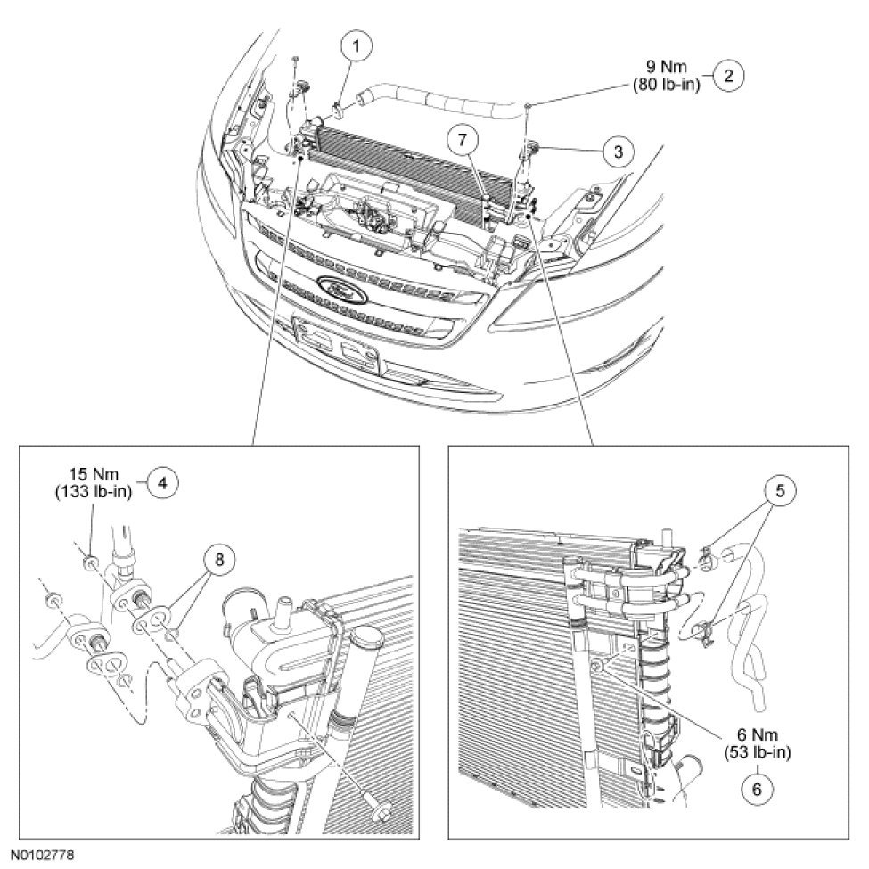 12. Lift upward and detach the condenser core from the radiator.