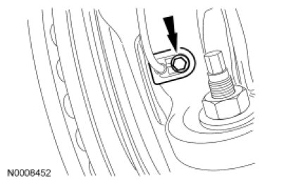 9. Remove and discard the strut-to-wheel knuckle nut and flagbolt.