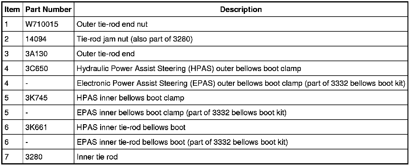 NOTICE: When servicing inner tie rods, a new bellows boot and clamps must be installed. The boots and clamps are designed to provide an airtight seal and protect the internal components of the steering gear. If the seal is not airtight, the vacuum generated during turning will draw water and contamination into the gear, causing failure of the steering gear components. Zip ties must not be used as they do not provide an airtight seal.