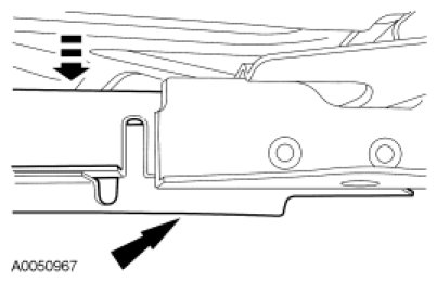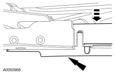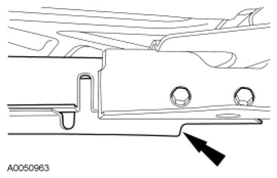 7. NOTICE: The transmission support crossmember is a press fit in the transmission support crossmember pocket. It may be necessary to pry the transmission support crossmember out of the transmission support crossmember pocket. Be careful not to damage the transmission support crossmember.