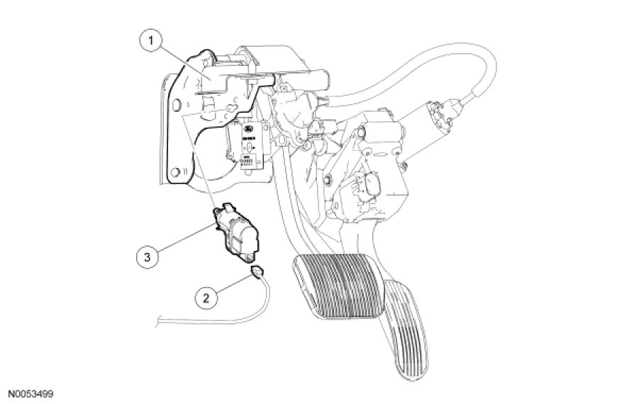 NOTE: The cruise control deactivator switch is self-adjusting and must be installed after the brake booster push rod and the brake pedal have been installed. Do not pull-up or push down on the brake pedal during the installation of the cruise control deactivator switch.
