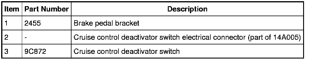 1. Press down on the brake pedal to provide access to the cruise control deactivator switch plunger.