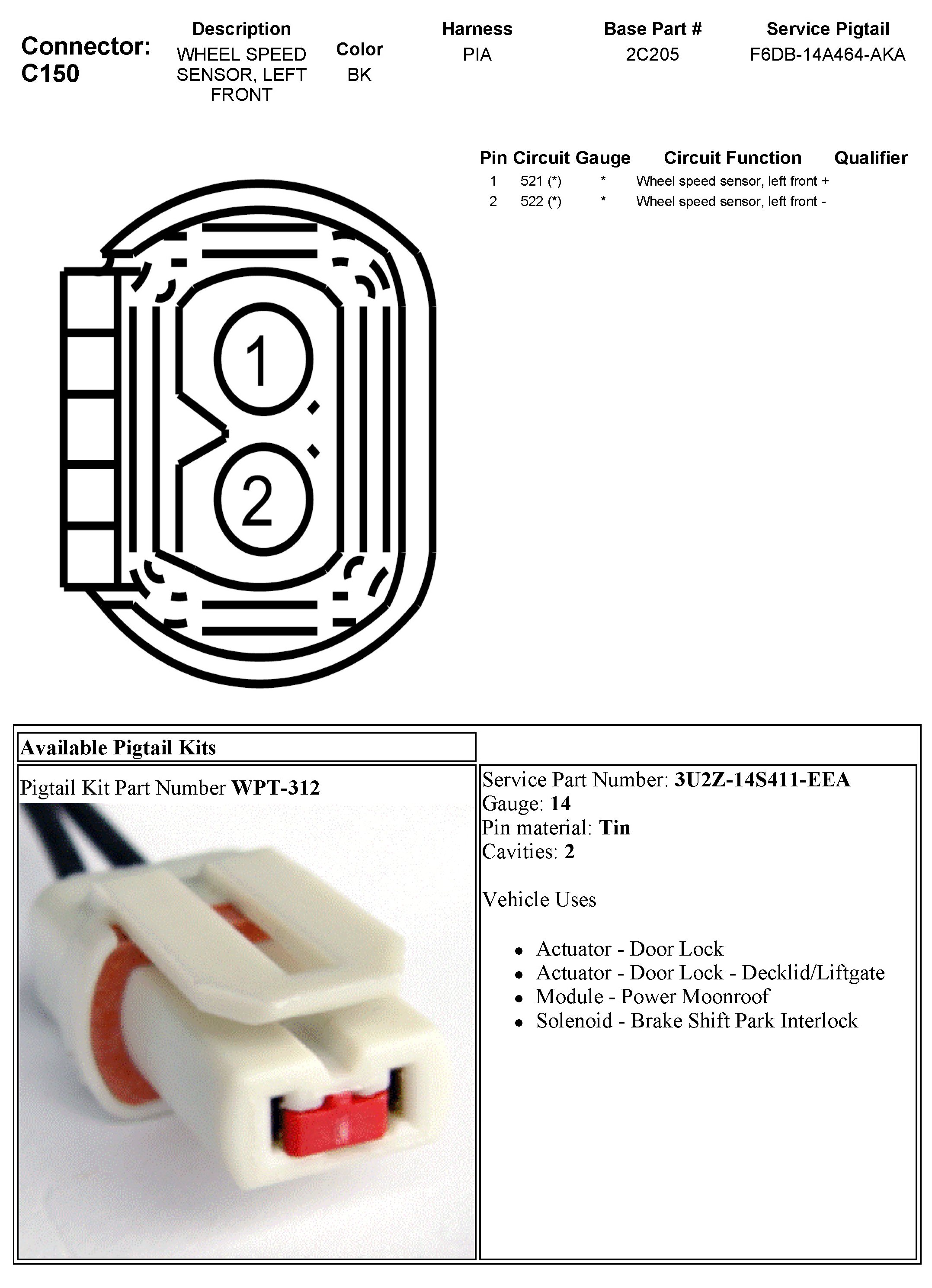C150 Wheel Speed Sensor, Left Front