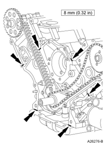 11. Remove the engine front cover from the front cover-to-cylinder block dowel.