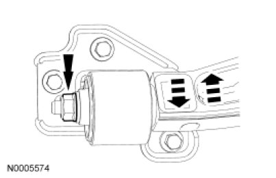 Caster is adjusted by loosening the lower arm rearward pivot bushing nut and moving the arm inward or outward. When adjusting the LH caster, a centering washer must be removed and discarded prior to adjusting.