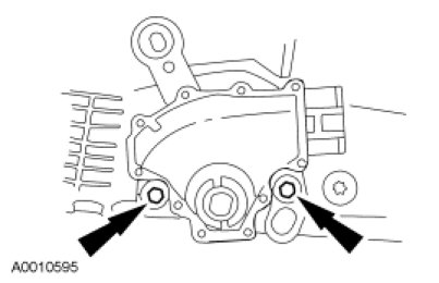 3. NOTICE: Tightening one screw before tightening the other may cause the Transmission Range (TR) sensor to bind or become damaged.