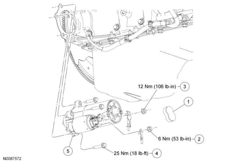- Tighten the 2 upper bolts to 25 Nm (18 lb-ft).