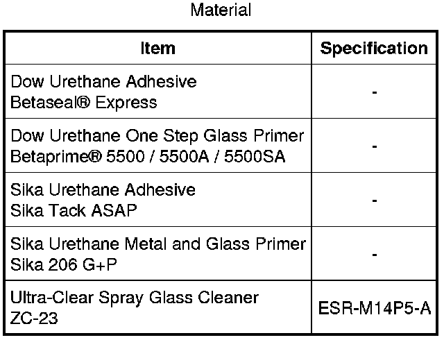 5. NOTE: Be sure to use the same brand of cure-rate products for the urethane adhesive and glass primer. Do not mix different brands of urethane adhesive and glass primer. Refer to the Material Chart in the procedure.