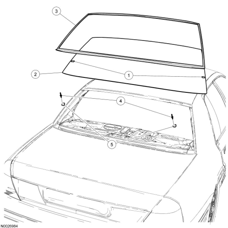 8. NOTICE: Before positioning the rear window glass, open vehicle windows to prevent the air pressure or closing doors from affecting the urethane adhesive bond.