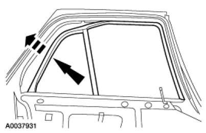 3. NOTE: Pull the quarter glass forward to loosen the rear door top glass run assembly.