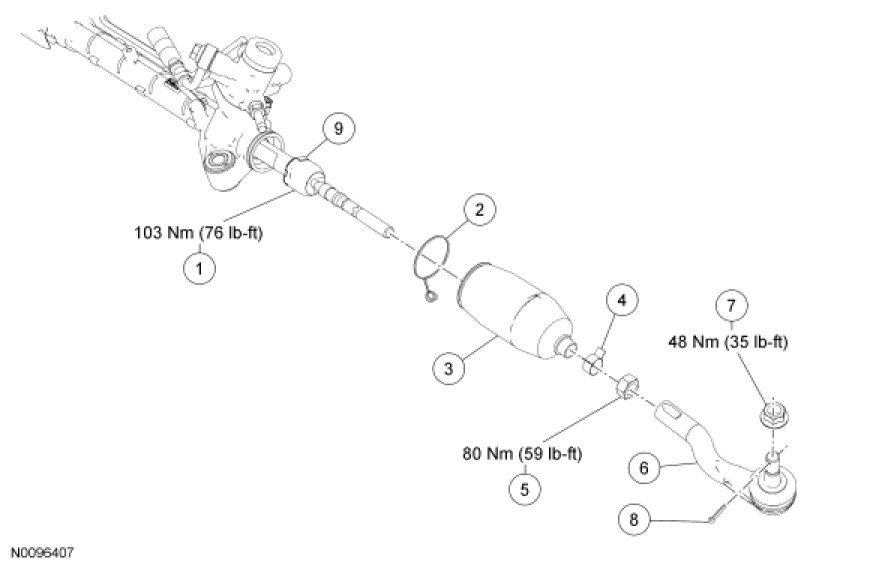 NOTE: On HPAS steering gears, the inner tie-rod retaining washer must be crimped after the inner tie rod has been tightened.
