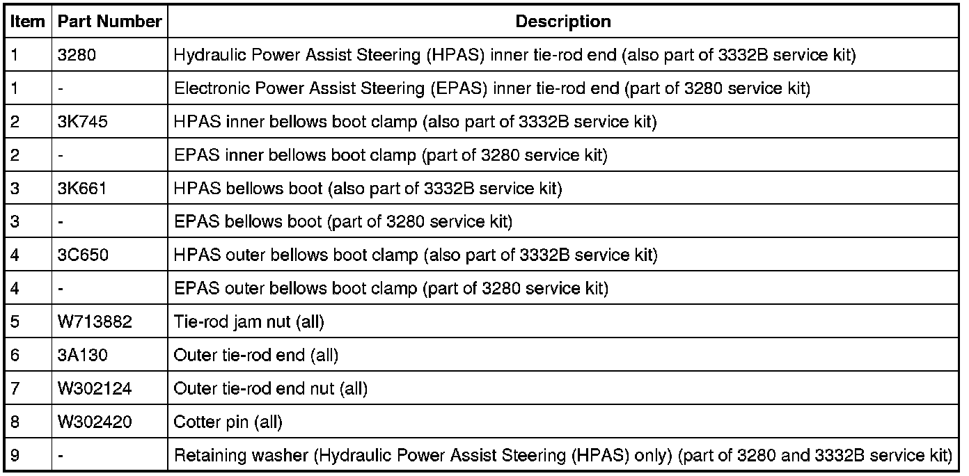 NOTICE: When servicing inner tie rods, a new bellows boot and clamps must be installed or a leak may occur causing steering gear damage.