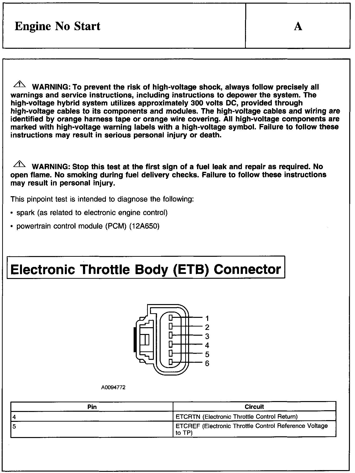 Test A: Engine No Start