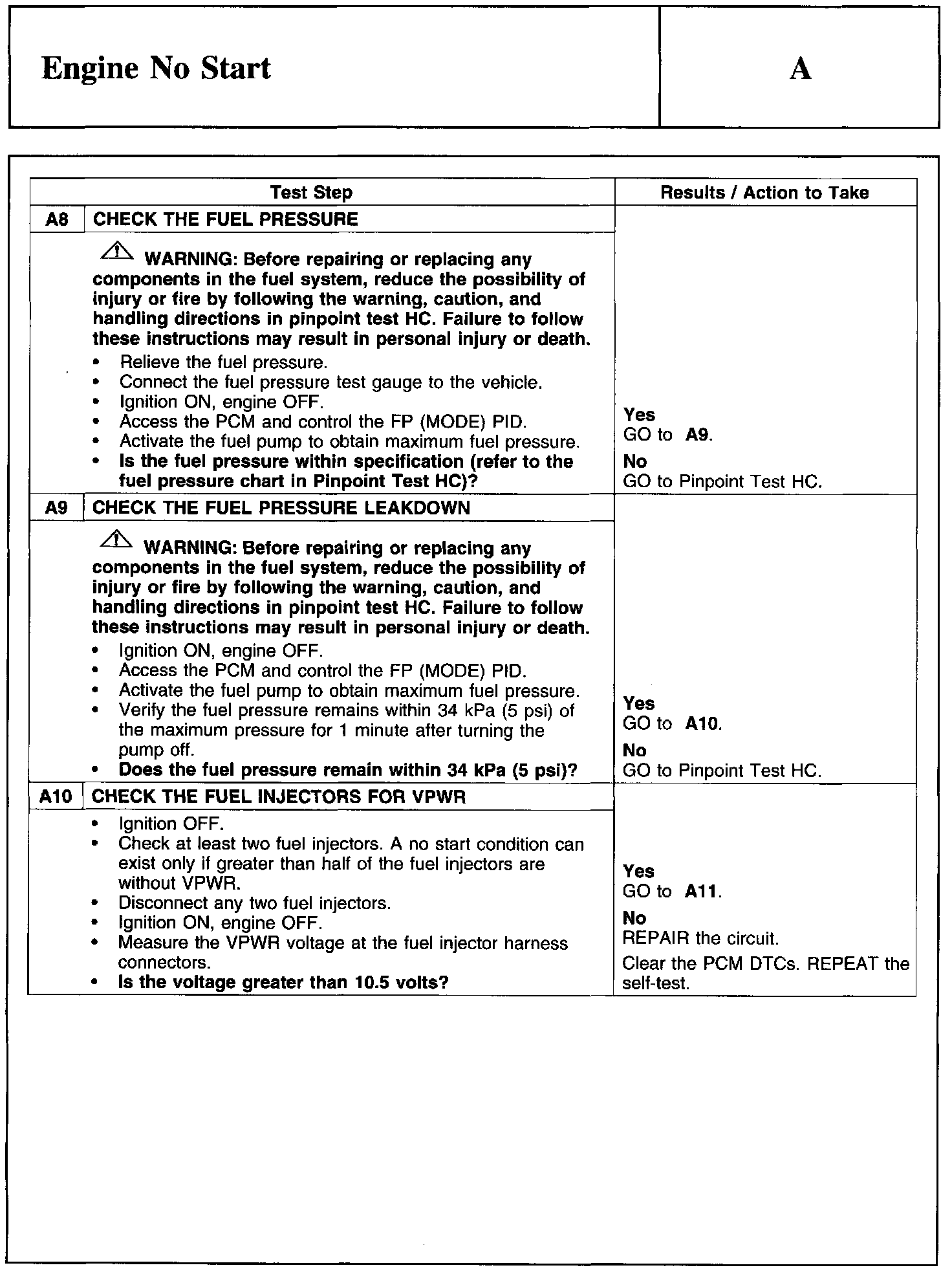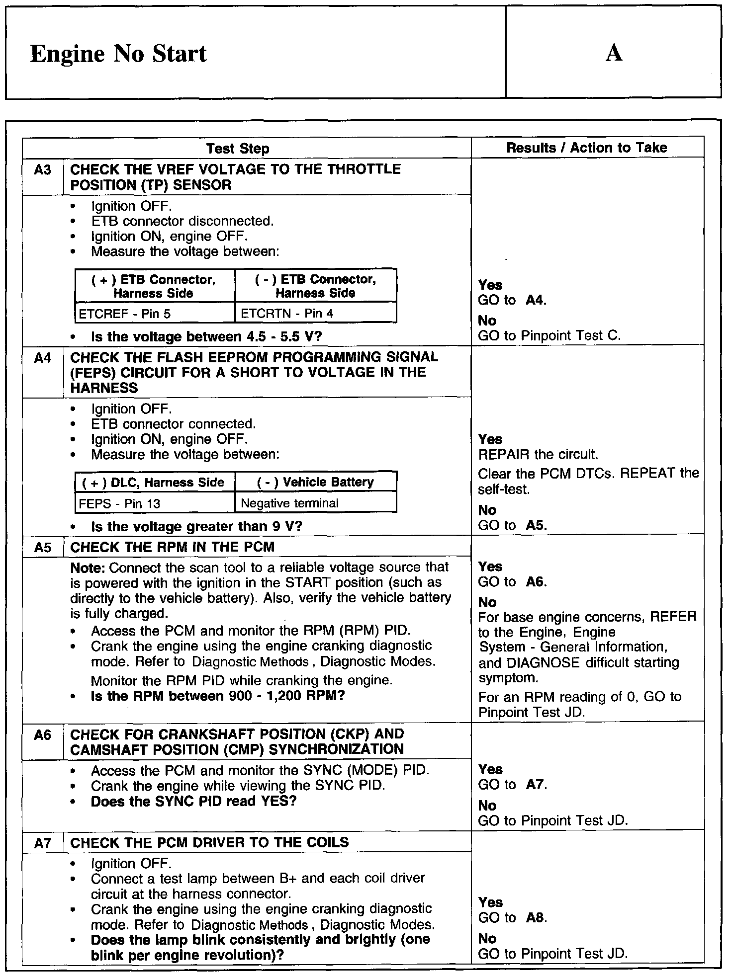 PINPOINT TEST A: ENGINE NO START
