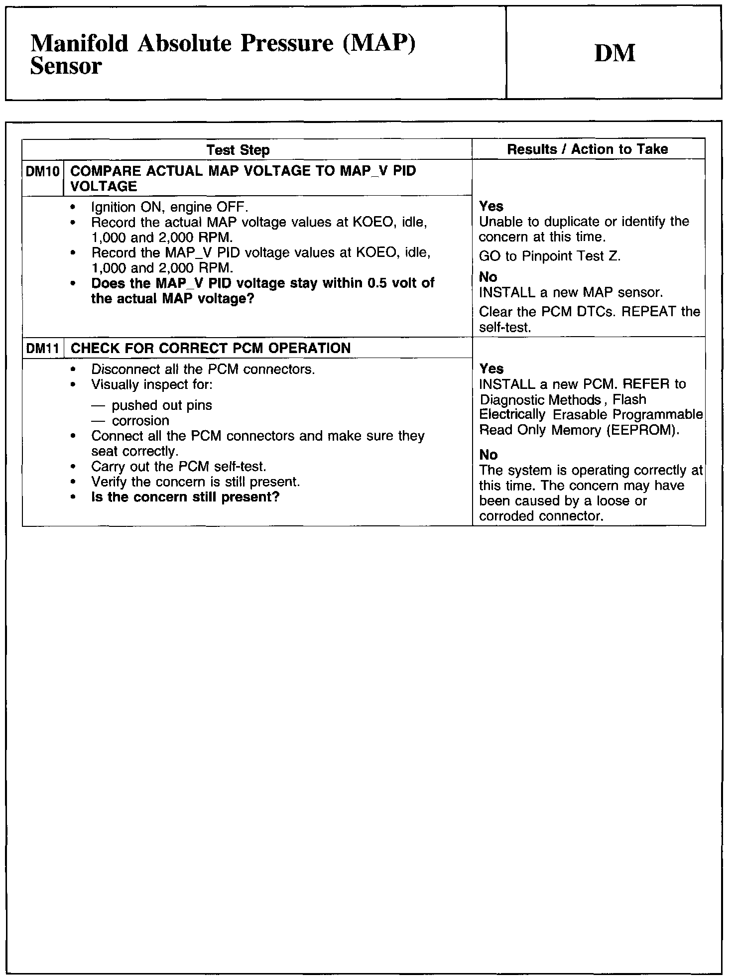 Test DM: Manifold Absolute Pressure (MAP) Sensor