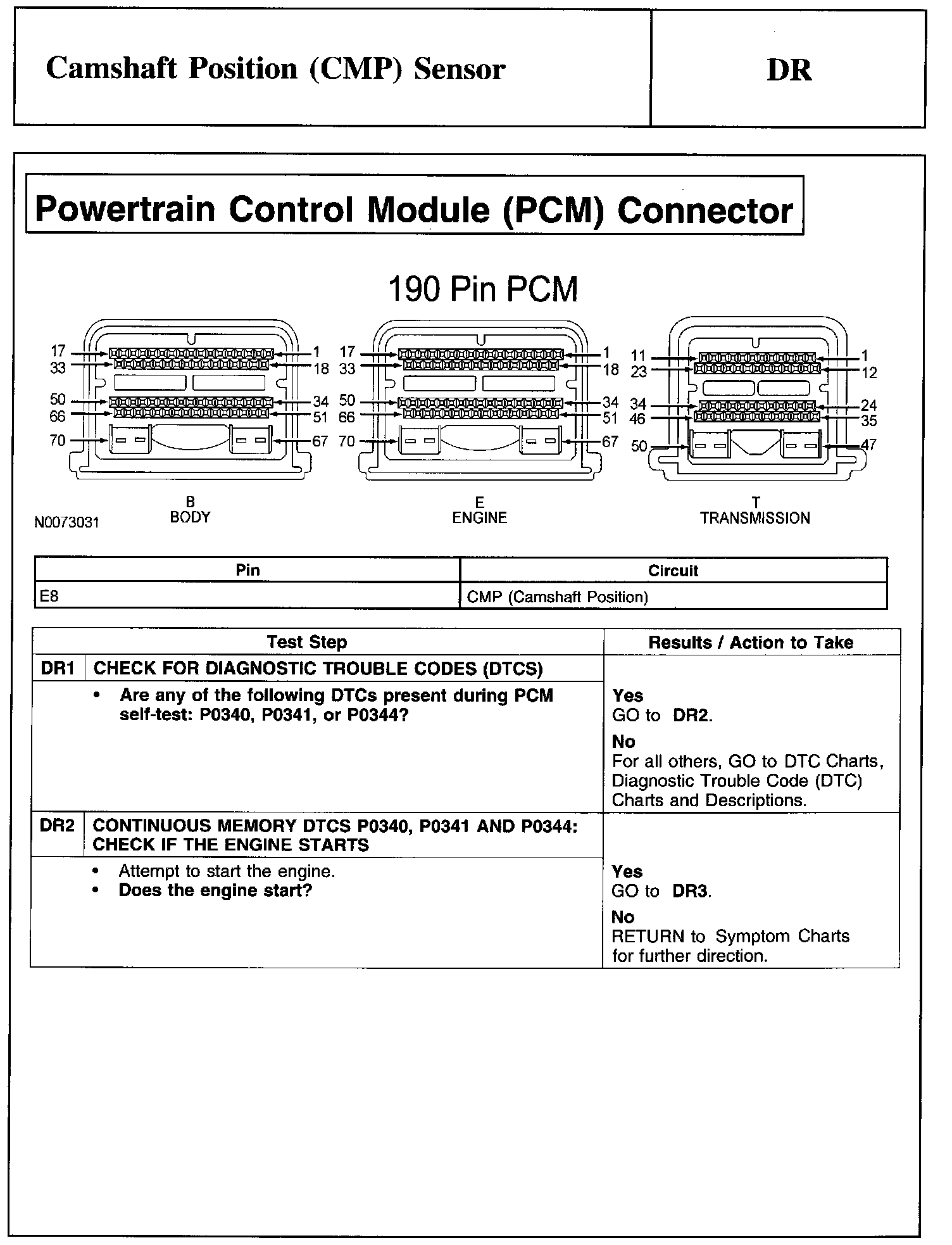 Test DR: Camshaft Position (CMP) Sensor