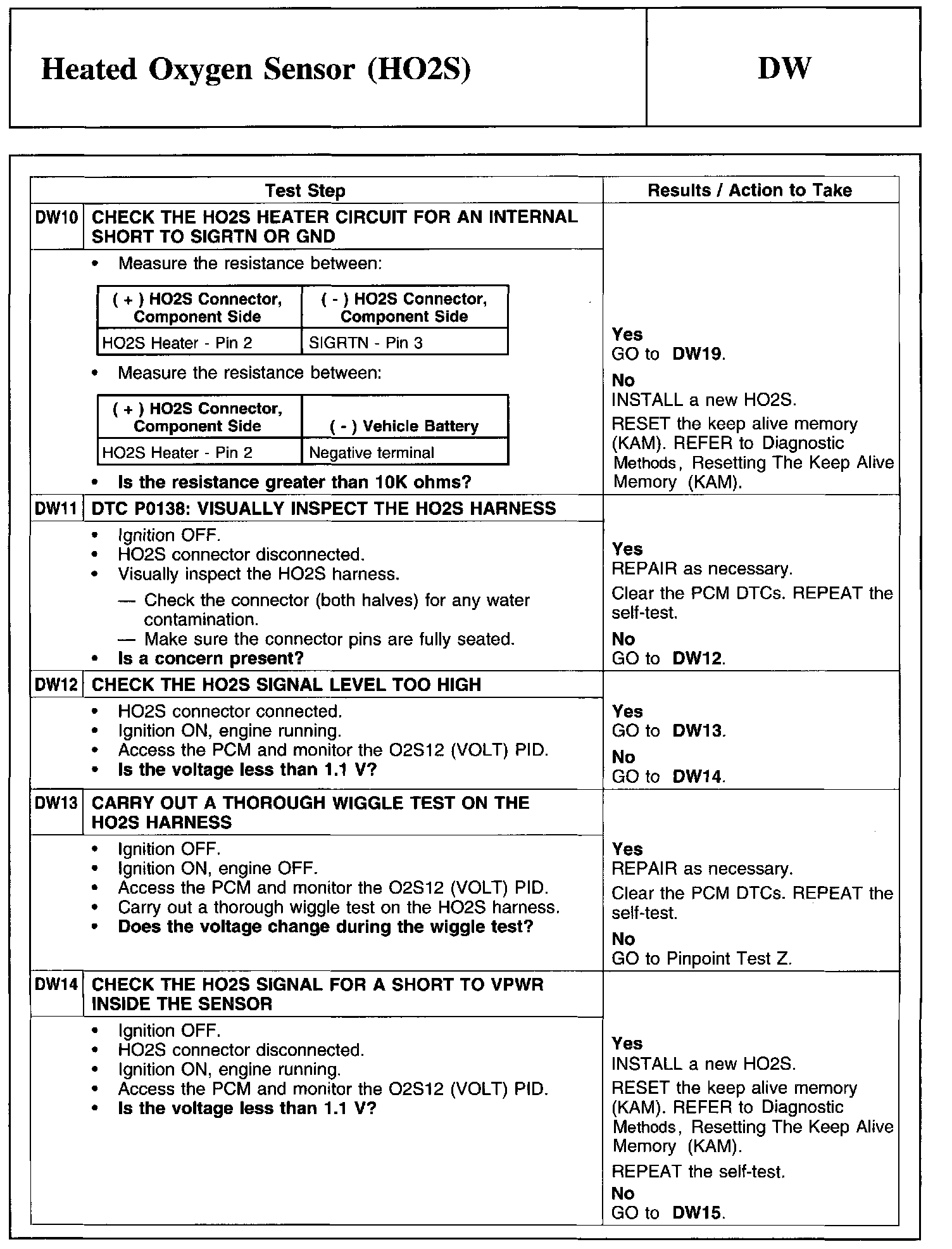 PINPOINT TEST DW: HEATED OXYGEN SENSOR (HO2S)
