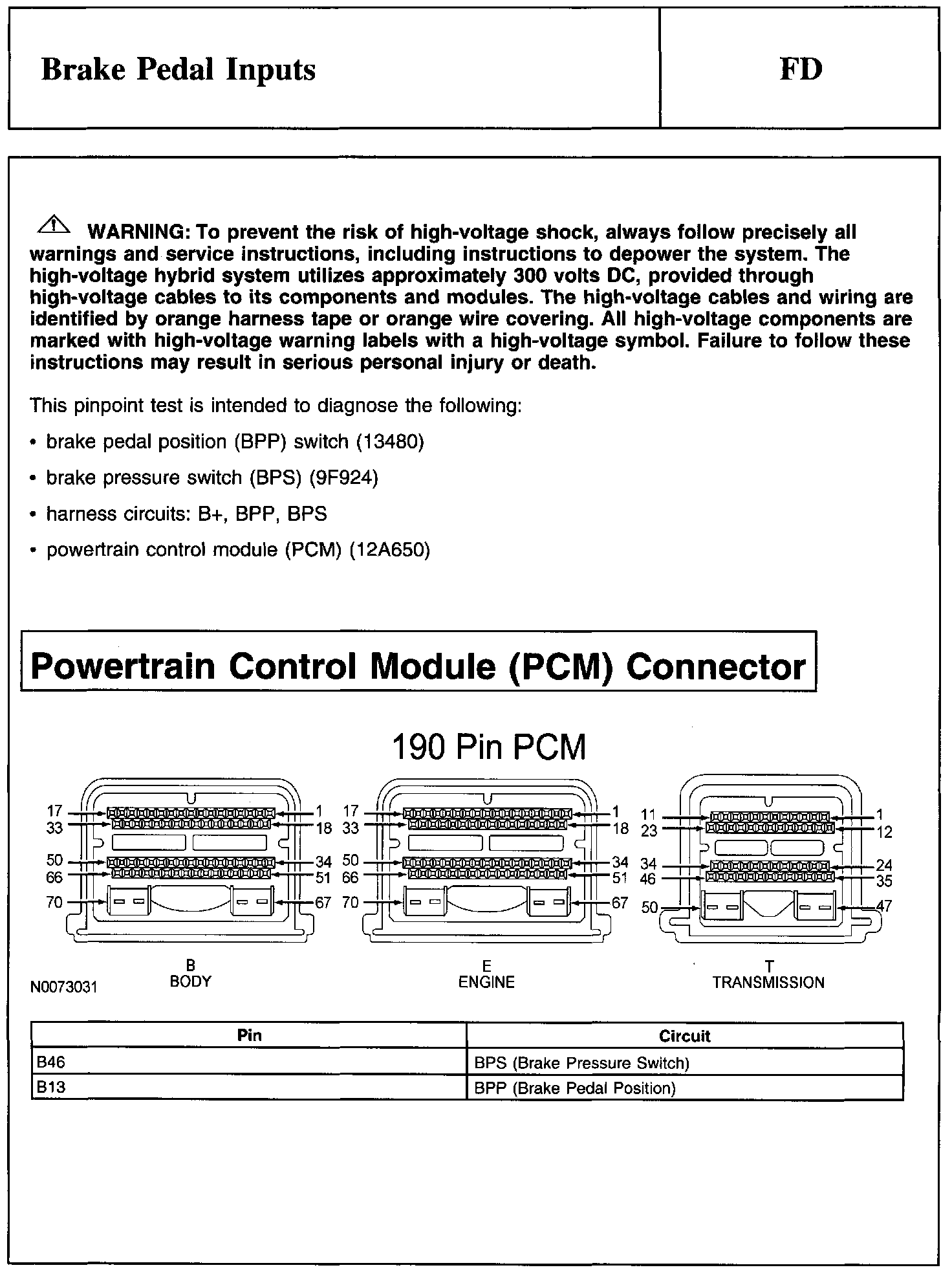 PINPOINT TEST FD: BRAKE PEDAL INPUTS