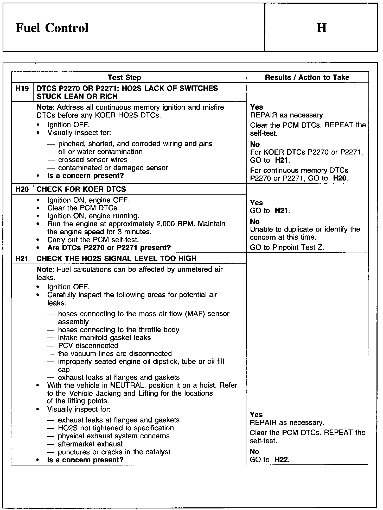 PINPOINT TEST H: FUEL CONTROLWarnings And Heated Oxygen Sensor (HO2S) Connector: