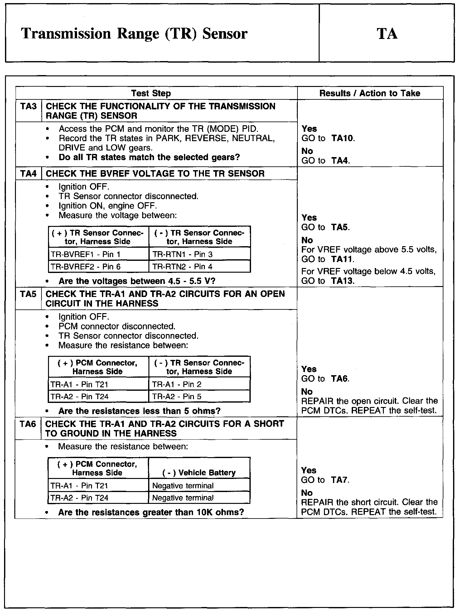 PINPOINT TEST TA: TRANSMISSION RANGE (TR) SENSOR