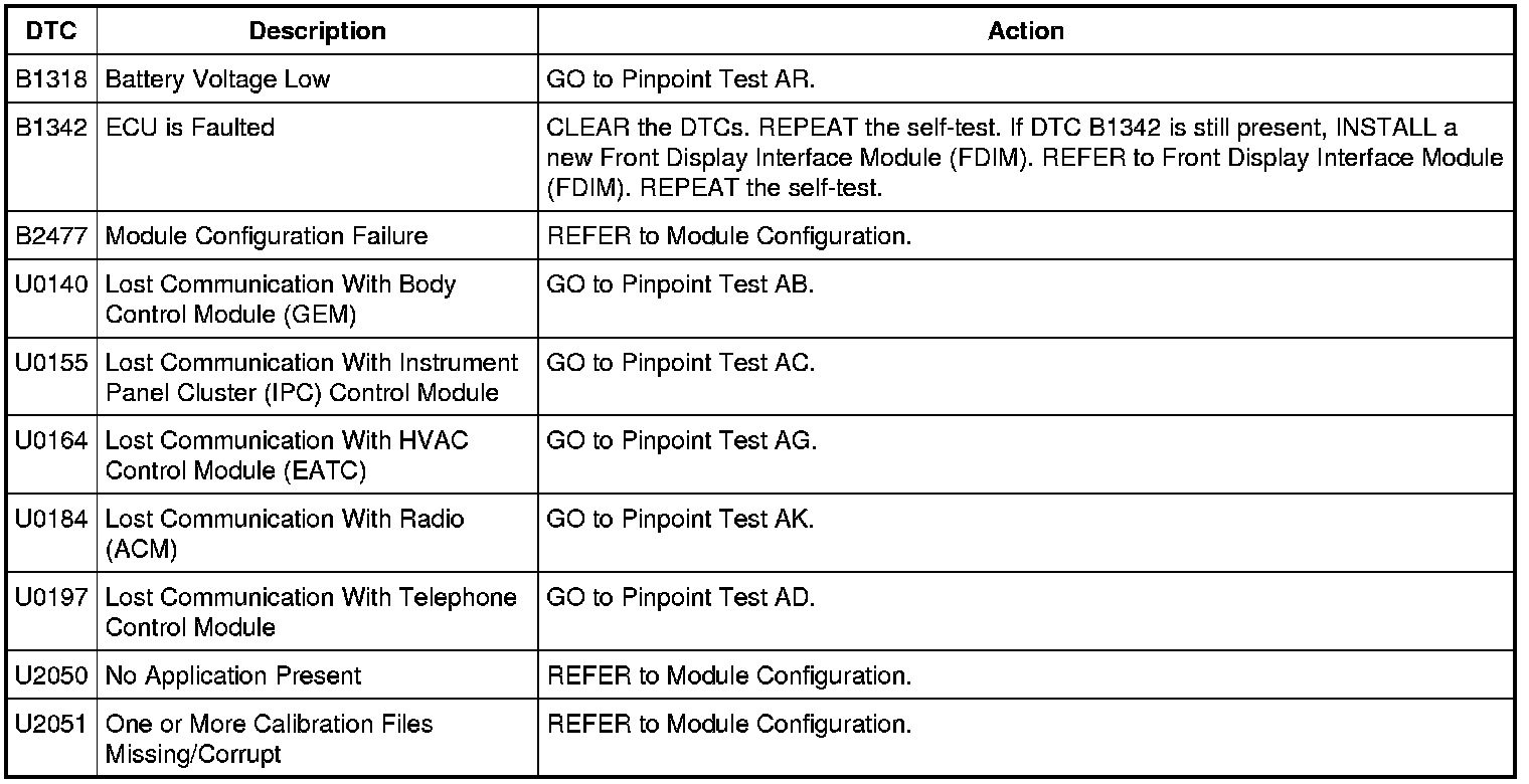 Front Display Interface Module (FDIM) DTC Chart - Without Navigation