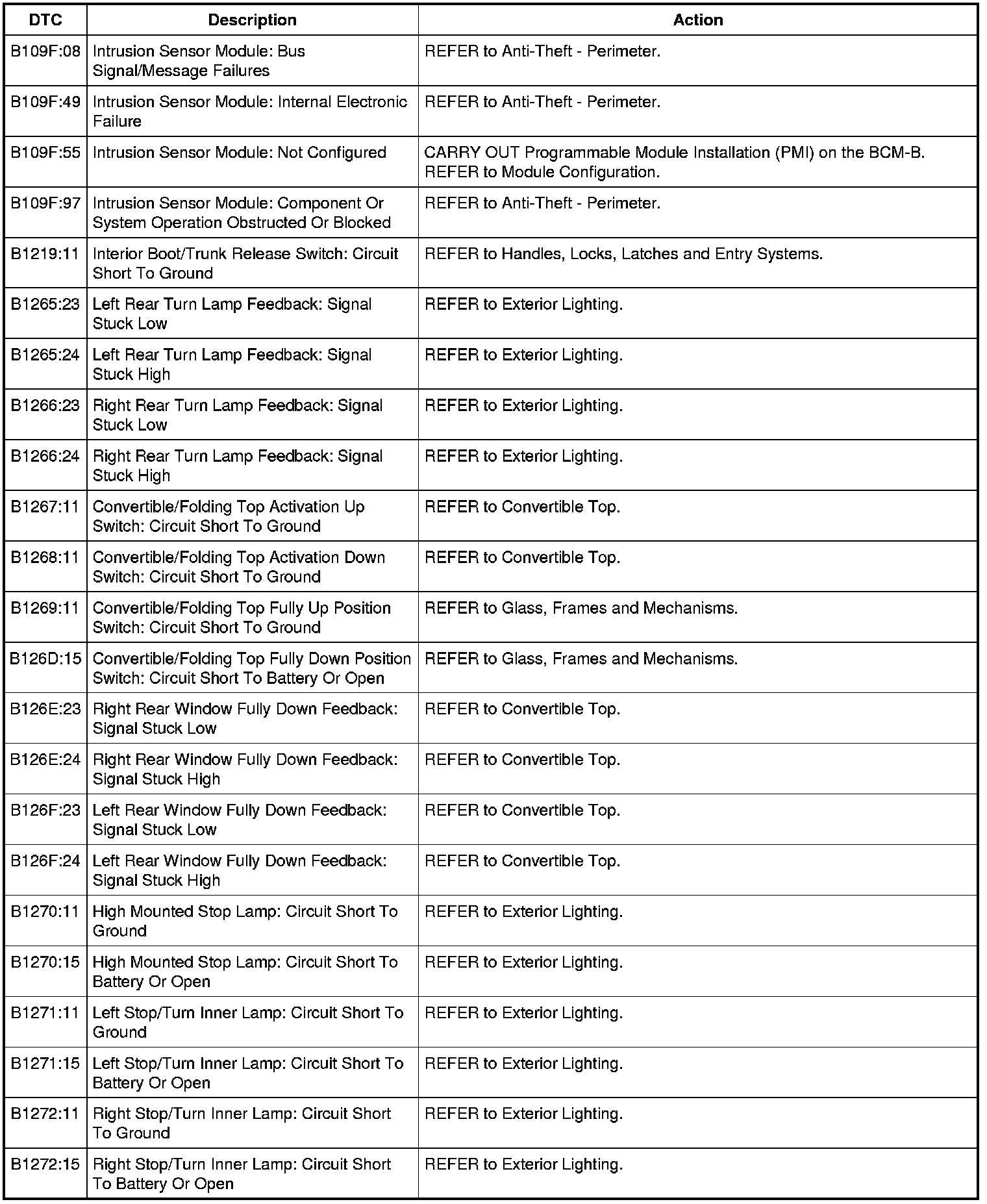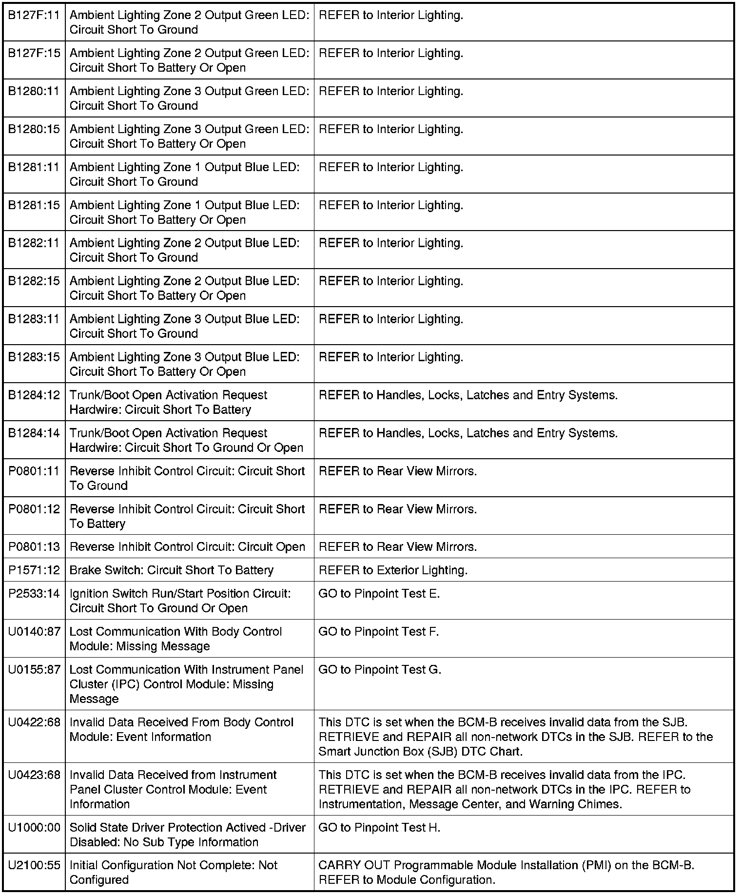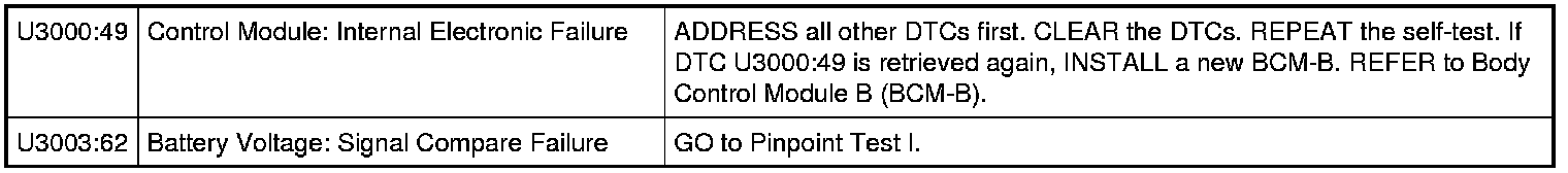 Body Control Module B (BCM-B) DTC Chart