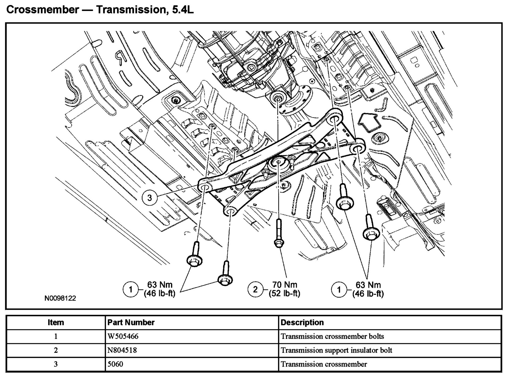 4. Remove the transmission crossmember bolts and remove the transmission crossmember.