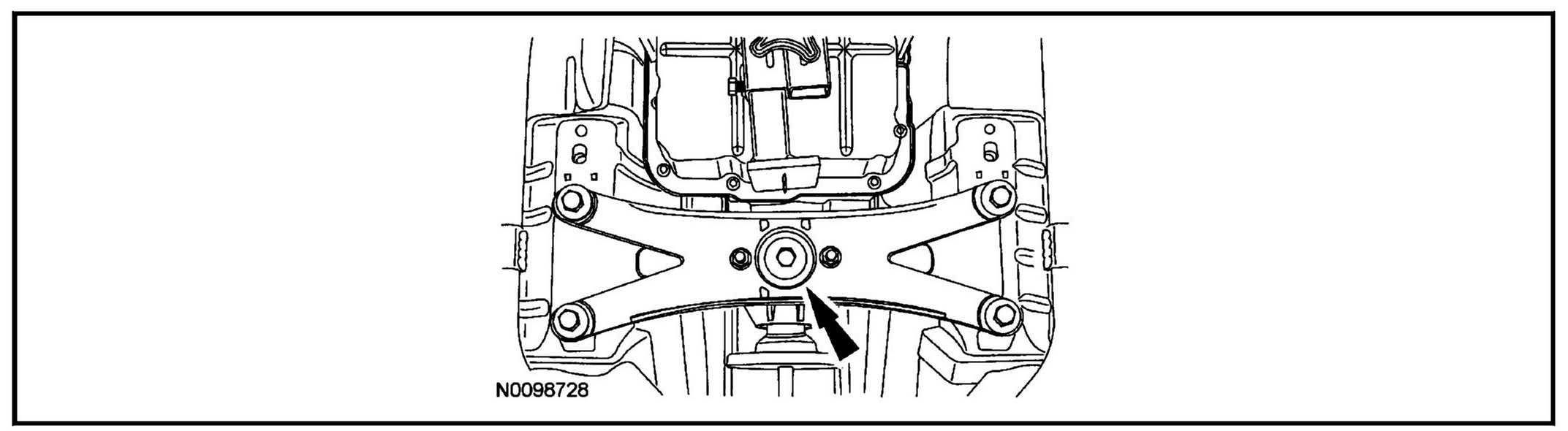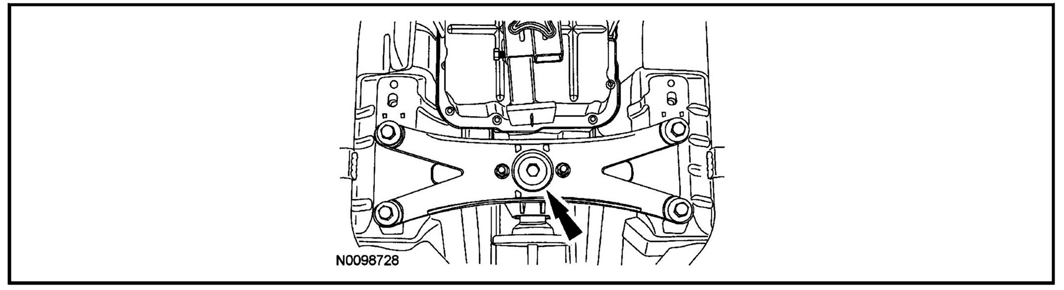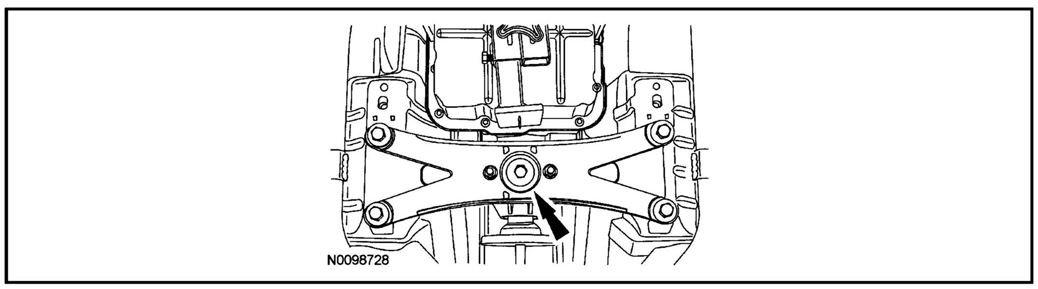 5. With the transmission support insulator neutralized, tighten the transmission crossmember bolts.