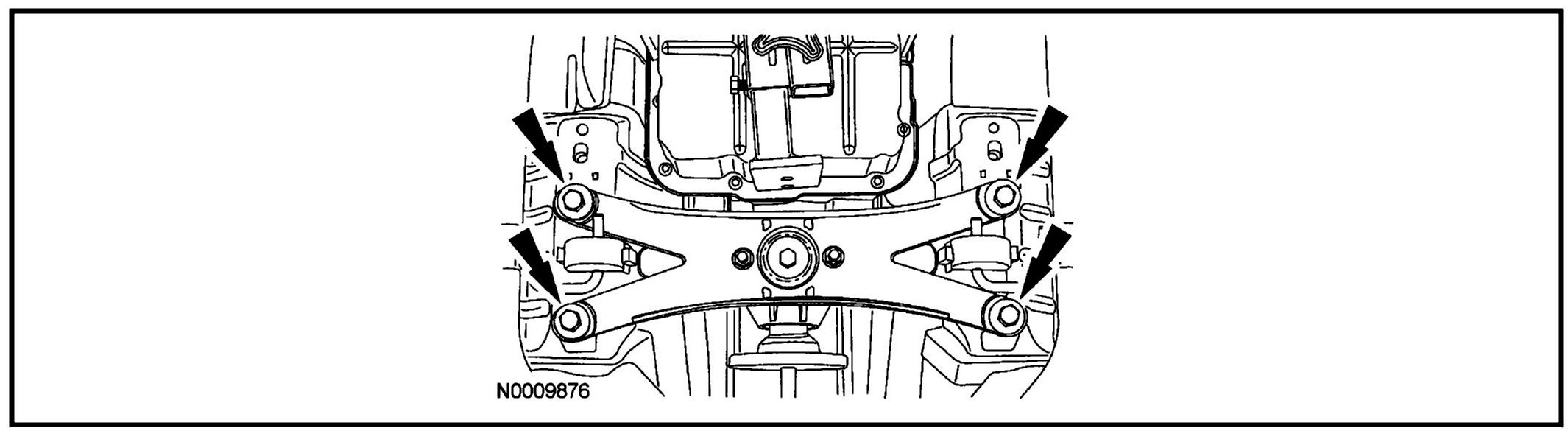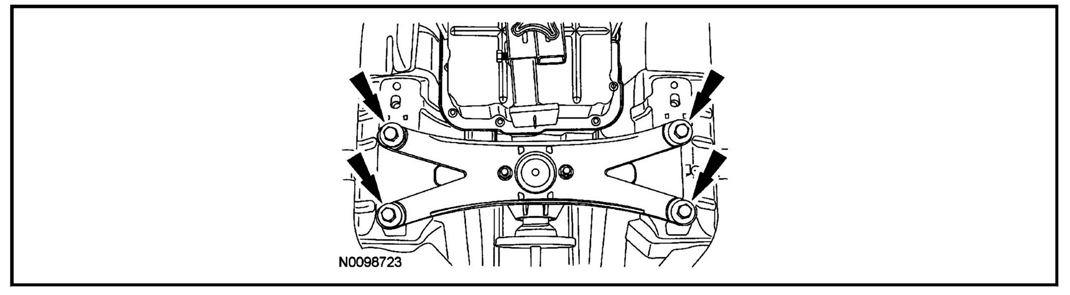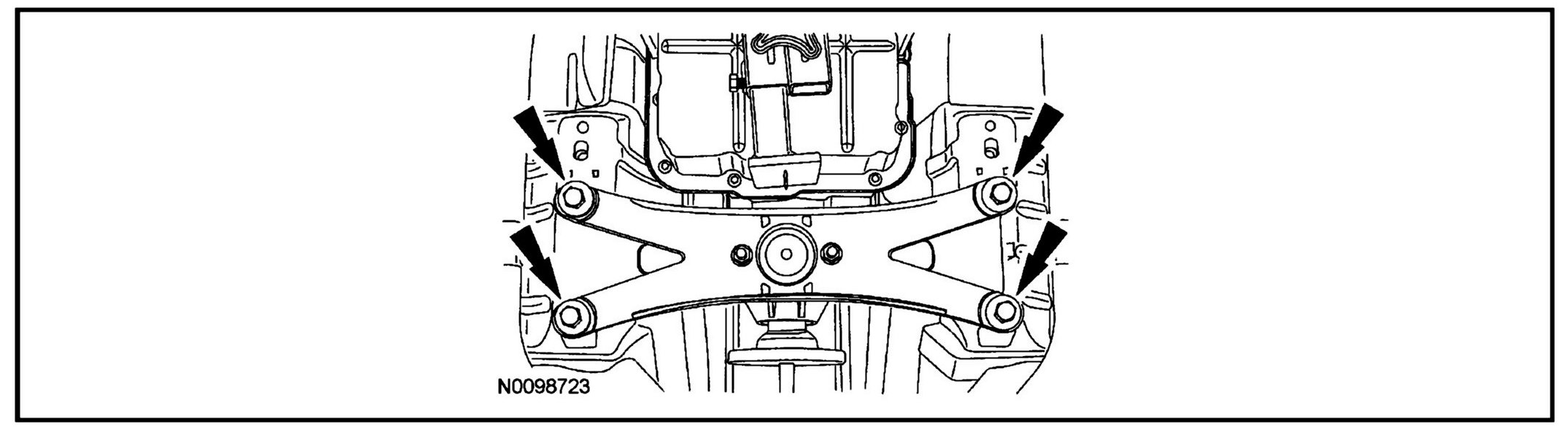 5. With the transmission support insulator neutralized, tighten the transmission crossmember bolts.